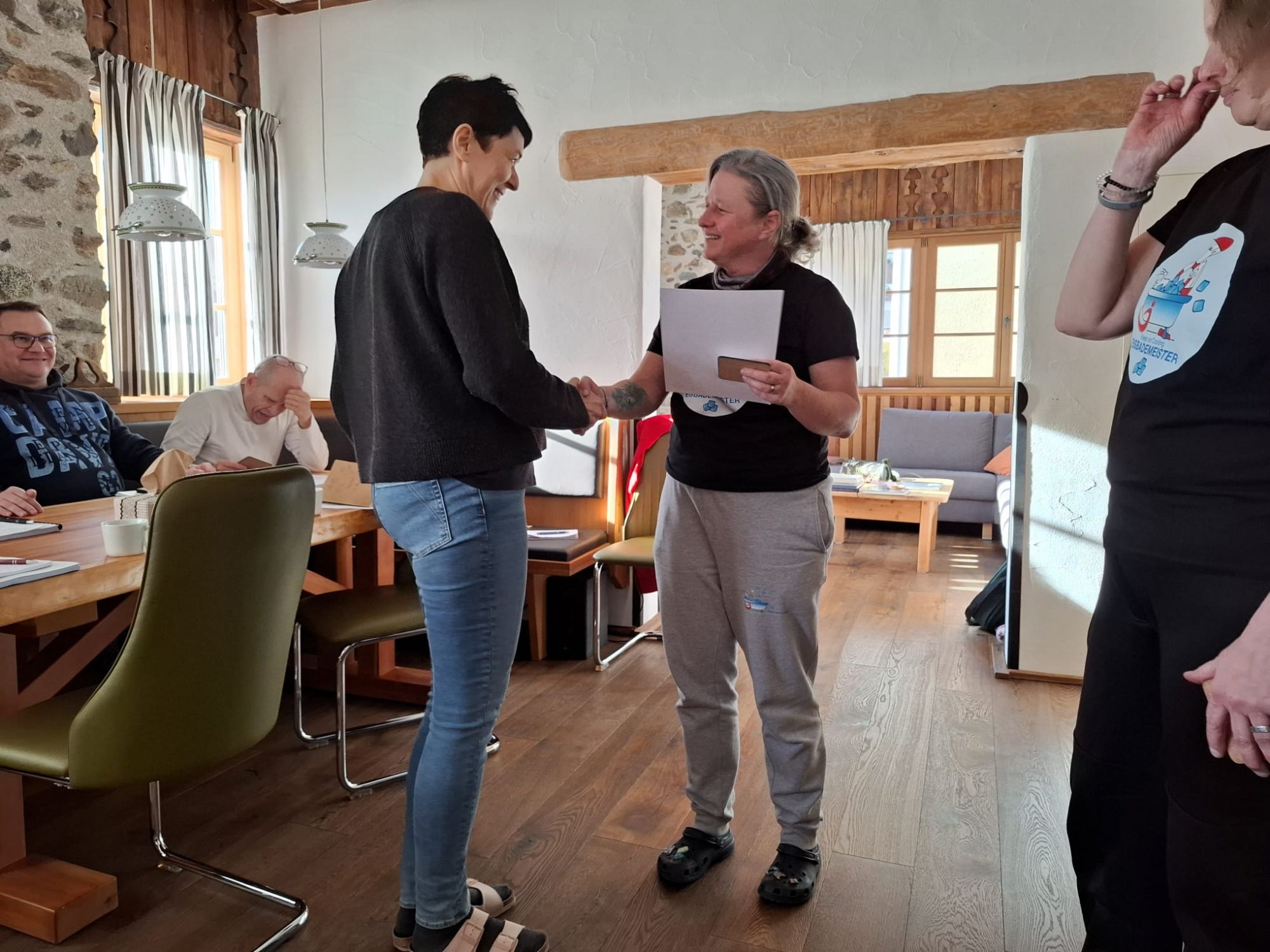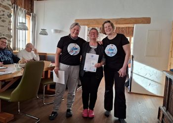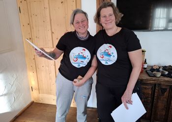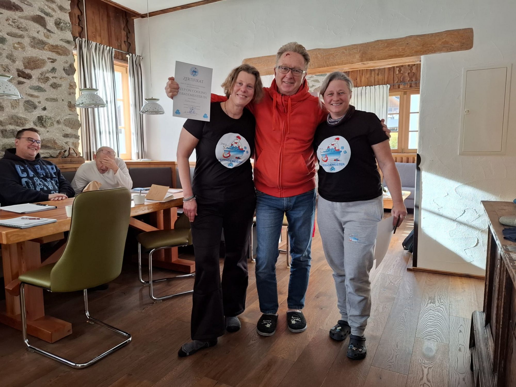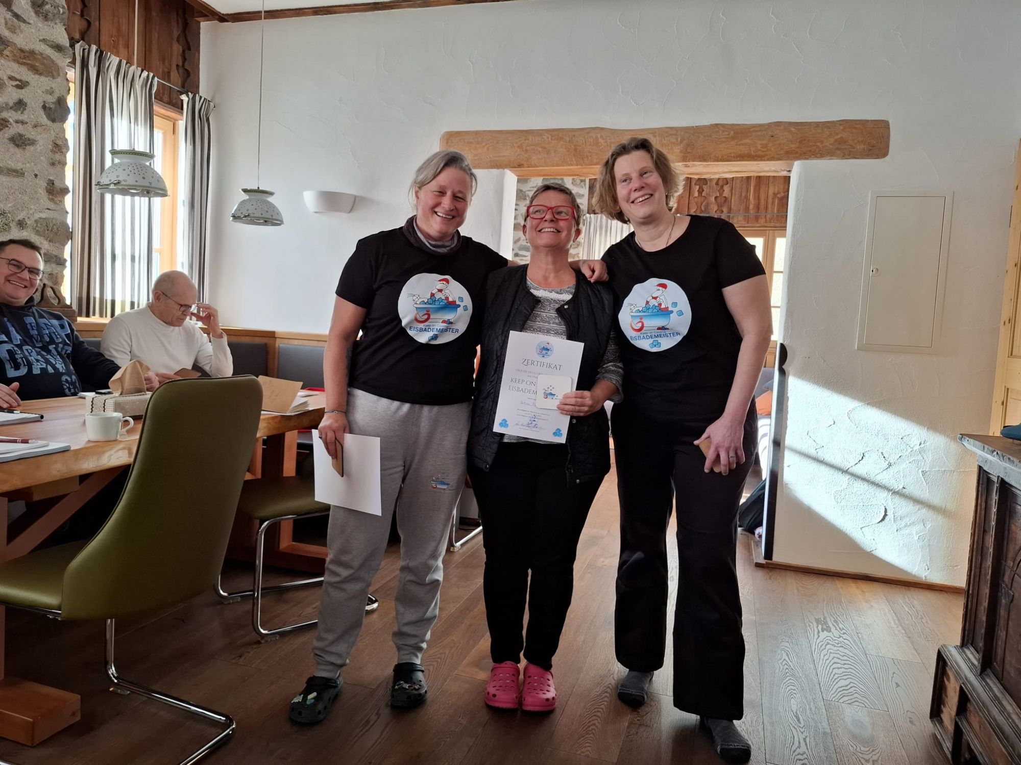 Sonja Flandorfer, auch bekannt als die Coolste Frau Österreichs, und Martina Hädge bilden erfahrene Kaltwasser-Fans zu „Eisbademeister“ aus.