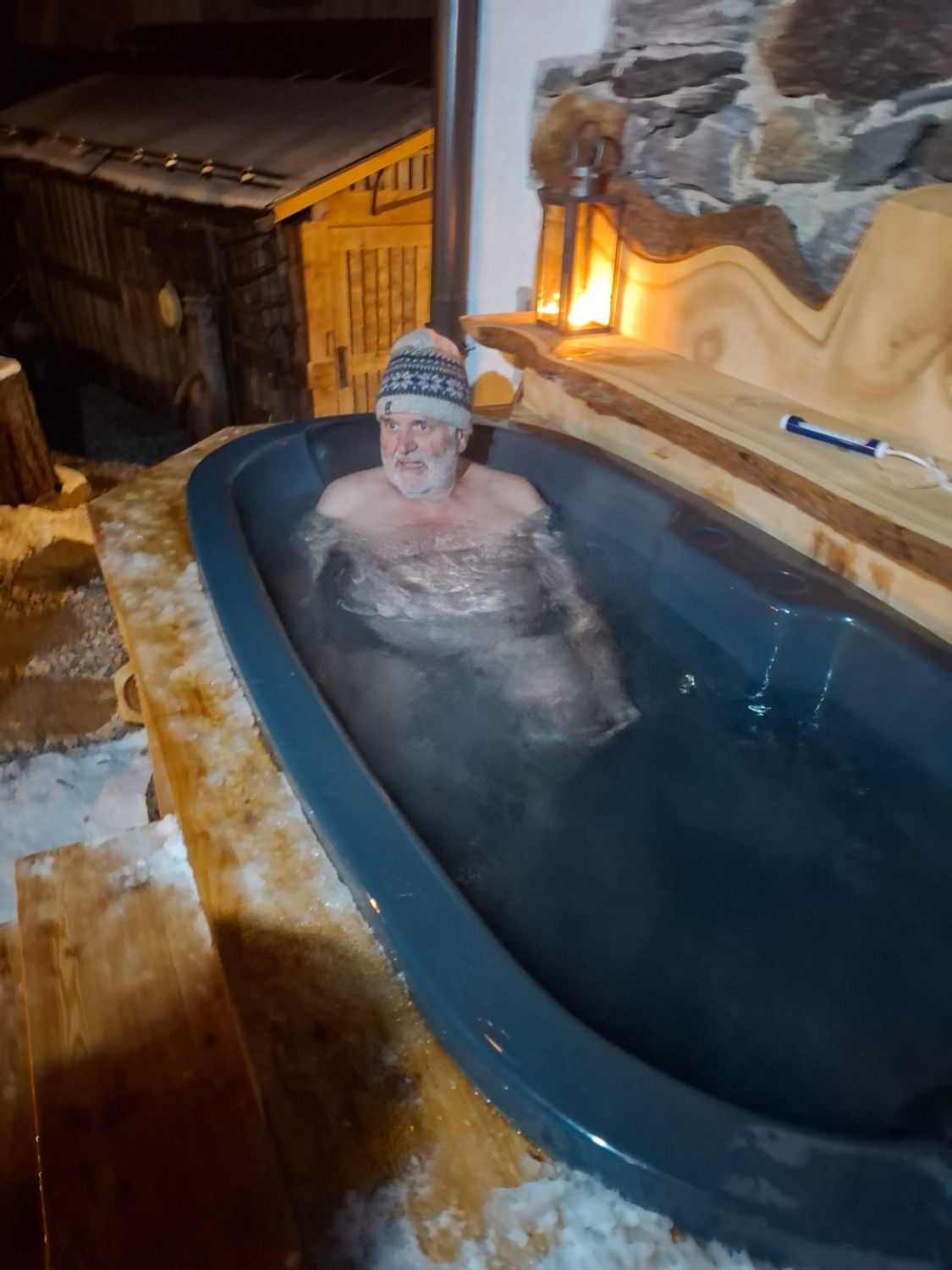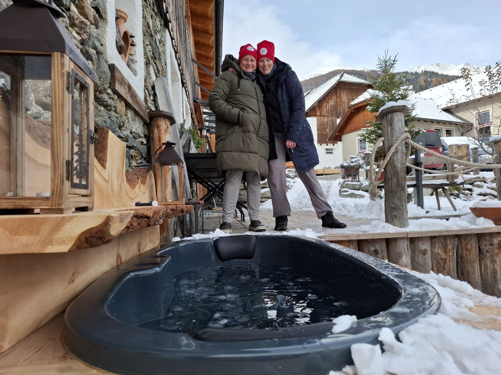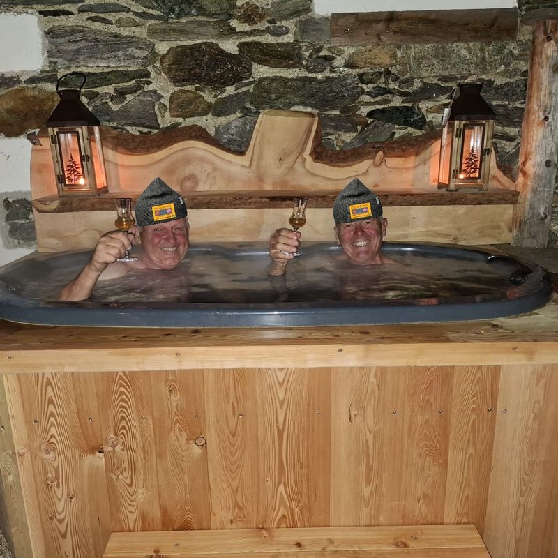 Diese Woche haben wir etwas Besonderes für unsere Gäste in unserem Garten in Betrieb genommen: ein Eisbad für zwei Personen.