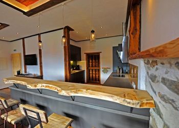 Das rauchfreie Appartement befindet sich auf der ehemaligen Tenne des Bauernhauses und ist geeignet für 9 Personen. Das Appartement ist mit einer Fläche von 135 Quadratmetern sehr geräumig. Es ist südseitig und hat ein schöner Ausblick auf das Dorf bis in die Kärntner Nockberge. Am 1. Stock gibt es eine Küche mit Bar, großer Wohnraum mit Esstische und Sitzbänke, und angrenzend Lounge mit Sofa. Getrennte WC.
