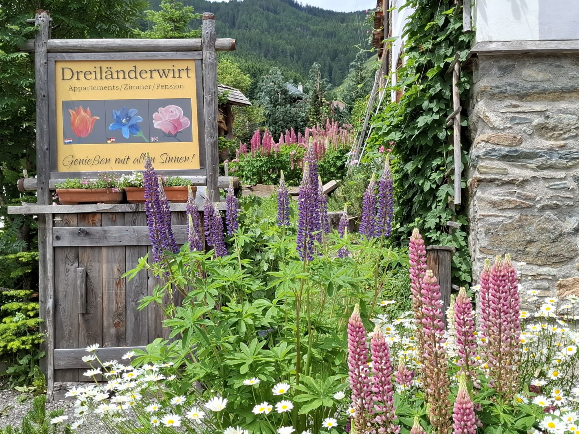 Vor mehr als fünfzig Jahren war der aktuelle Dreiländerwirt ein verlassener Bauernhof, 1200 Meter hoch gelegen im traditionellen Bergdorf Lessach im Lungau (Salzburg).