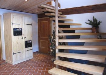 Das Appartement ist ein Teil des ehemaligen Stall und Tenne und ist geeignet für 4 Personen. Das ist mit einer Fläche von 70 Quadratmetern sehr geräumig. Wir haben versucht soweit möglich alte Materialien wie Naturstein, altes Holz und Ziegelsteine zu benutzen. Außerdem ist viel unbehandeltes Holz verwendet worden, und das riechen Sie wenn Sie im Haus hereinkommen!