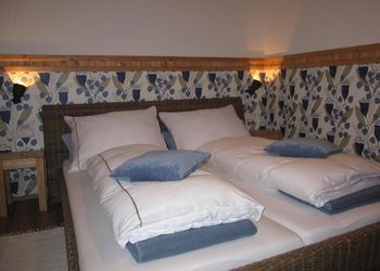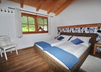 Dieses Zimmer befindet sich im 1. Stock in der Werkstatt der ehemaligen Tenne. Es hat ein eigenes Badezimmer mit Duschkabine, großes Waschbecken und Toilette und eine wunderschöne Aussicht! Das Doppelbett, die Farbwahl und Wand-Dekorierung kreieren eine englische Atmosphäre.